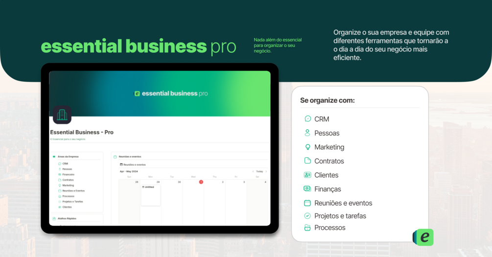 Com o Essential Business Pro, você terá todas as ferramentas necessárias para impulsionar o crescimento do seu negócio, aumentar a produtividade da equipe e alcançar seus objetivos empresariais com sucesso.